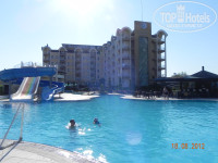 2 отличных бассейна. Горки супер! У нового корпуса нет тента, но зато ночью в нем можно купаться и он подсвечивается!
