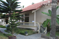 Номер большой, просторный, плазма на стене, напротив кровати висит, правда только РТР-Планета вещает на русском. В номере минибар (при заселении сразу сказали чтобы все из него убрали, что бы не было проблем при выезде), кондиционер, фен, чайник, сейф в шкафу (не пользовались), также два больших зонтика с логотипом отеля(так и не понял от солнца или дождя?) и две пары шлепанцев (на мою ногу не налезли - 44 рамер :) В общем жизнь налаживается :) Уборка в номере каждый день, мы всегда оставляли чаевые горничной примерно по 10 килодонгов (за это она нам каждый день стелила чистую постель :), полы не моют, только подметают. Один раз пролил пиво на кафель, попросил помыть, вымыла пол во всем номере (дал ей 20тыс :) Деньги прятали в чемодан под замок, а аппаратура (фотоаппарат, видеокамера, мобильник и планшет) так валялись, ничего не украли. Завтраки в отеле на 4, не плохо, разнообразно, но меню скудновато. Каждый день дают на завтрак их супчик Pho, то с говядиной, то с курицей, через день, на мой взгляд самый вкусный из всех которые мы ели вне отеля. Территория отеля большая, чистая, зеленая (но мы видели и зеленее :), большой бассейн, ближе к ресепшену идет стройка нового двухэтажного здания, днем шумно. Есть теннисный корт и спортзал, но нам это было не интересно :)) На территории отеля, на пляже есть кайт-школа, держат русские ребята, учат хорошо, во время нашего пребывания туда приехали двое из "Уральских пельменей" (Брекоткин и Рожков) покататься на виндсерфе, так что еще один плюс отелю :)