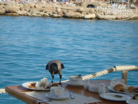 На свежем воздухе в ресторанах прикольно - красивый вид, но кучи воробьев и ворон и засранная мебель превращала эти места в курятник. Также сложно отойти от стола - на него сразу садятся птицы и жрут все, даже огурцы и сахар.