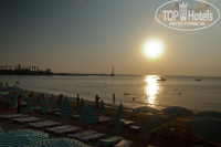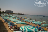 Пляж достаточно вытянутый вдоль берега, также песчаный, 3-4 ряда лежаков с зонтиками. Найти свободные лежаки можно всегда. Чистота на пляже и в море в целом неплохо, но могло быть и лучше :)
