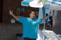 Море спокойное, теплое (температура в среднем была +35 на воздухе, по ощущениям +30 в воде), волны отсутствуют. Вход в море очень пологий, песчаный, для детей очень удобно. На расстоянии 25-30 м от берега глубина около метра, на 150-200 м - около 2-2.5 м.