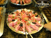Питание нас устроило на все 5, голодными не были ( как только некоторые умудряются?). Очень вкусная рыбка на гриле и баранина. Сладости - отдельный разговор, все вкусно. Очень хорошие завтраки- йогурты с разными добавками, оладушки с вареньем, медом и шоколадом. Конечно, многие пишут про турецкие сосиски, какие они невкусные. Господа, там много другой отличной еды, чтож вы ищите везде недостатки. Мы старались не кушать те продукты, которых хватает в нашей обыденной жизни. Фрук тов было достаточно, правда некоторые были недозрелые, приходилось брать в номер и через 1-2 дня абрикосы и персики были спелыми. Арбуз всегда был в достаточном количестве , как в ресторане , так и на пляже и барах. Кушали всегда в главном ресторане по той причине, что на улице очень жарко и все вокруг курят. Для нас это ненормально, поэтому после одного обеда на улице - только внутреннее здание основного ресторана и выбирали.