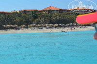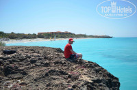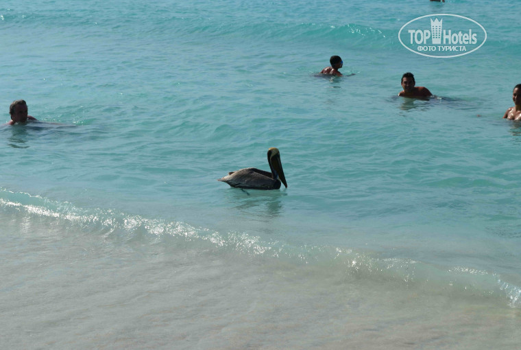 Пляж. Океан очень красивый - чистый, лазурный, прозрачный. Похожий цвет воды я видел только в Таиланде в районе Симиланских островов. Но вот пляж... Сам песок тоже красивый, на 80% состоит их известняка (измельченных, частично измельченных и целых ракушек и кораллов)...,а также окурков, пластиковых стаканчиков, презервативов и п.т. ("спасибо" канадской молодежи в изобилии встречающейся на курортах Кубы). Лежаков хватает, а вот зонтов нет. Учитывая тот факт, что солнце там "жжет", то наличие тени от зонта становится жизненно необходимым. Поэтому встаем в 8-00, берем пляжные полотенца (кстати, их дают в прокат с залогом 15 кук за каждое) и идем на пляж занимать места. Далее возвращаемся в номер и продолжаем спать))). На пляже есть какамараны на педальной и парусной тяге, а также байдарки. Все в хорошем состоянии, жилеты в наличии и все бесплатно! Прилетаю пеликаны и ловят рыбу прямо в 2-х метрах от купающихся! Есть два скалистых мыса ограждающих пляж, с которых при большом желании можно понырять, правда лайвгардам это очень не нравится, одного такого прыгуна они при нас вылавливали из воды и откачивали... Кстати, как бы разграничен на правый и левый ( у каждого свой бар и разные лежаки). Так вот правый пляж лучше (на левом лежаки пластиковые и все поломанные). Да и на правом пляже есть волейбольная площадка.