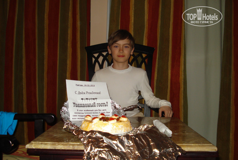 У сына был в воскресенье день рождения- мы получили вечером в номере-письмо с поздравлением и тортик, что порадовало!!! Сын попросил в подарок сафари и мы на целый день уехали в пустыню, а по приезду пошли в ресторан А-ля карт"Средиземноморский" Это жесть минут 10 мы ждали меню, потом 30 минут заказ, дети чуть не уснули, а за соседним столиком мальчик лет 10 уснул на столе, родители положили его на 2 стула. Но когда официант принес нам блюдо в котором были ВОЛОСЫ!!! Короче возмущению не было предела.. извинений кроме ...это не мои волосы. у меня не такие... от официанта не последовало. Причем за соседний стол пришла арабская пара, тут официанты носились как угарелые. Вообщем мы ушли от туда, зашли в Эмиральд и наелись от пуза-все гораздо вкуснее.