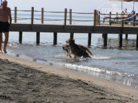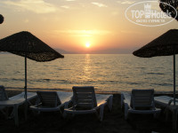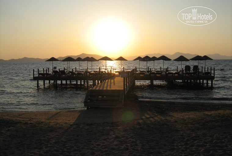 пляж ДЛЯ БОДРУМА достаточно хороший.так как ВНИМАНИЕ! это особенность региона узкая полоска песка и понтон, многие даже очень хорошие 5 в данном регионе вообще не имеют своего пляжа а люди загорают на деревянном понтоне. Так что пожалуйста чтобы не быть потом недовольным, внимательней выбирайте куда вы хотите поехать.повторюсь для бодрума пляж хороший.пляж мелкий темный песок . располагается через не очень оживленную дорогу.есть свой понтон заход в море хороший.есть бар.в этом году действительно на пляж бегали собаки.хотя не знаю кого это может напрягать мне нравилось наблюдать за их возней. плюсом для меня было и то что можно было достаточно далеко уходить гулять.в одну сторону до соседнего отеля. в другую сторону я проходила камню, дикий пляж, снова камни и там вообще шикарный (опять же для бодрума) пляж.не от куда не гоняют.где то видела отзыв что якобы на нашем пляже отдыхают местные. по крайней мере в наш заезд я их не видела а вот на соседнем пляже, диком да приходят каждый день.