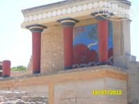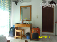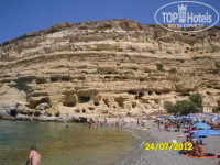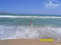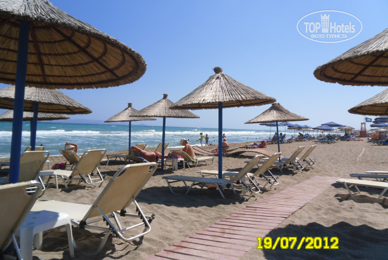 Отдыхали в этом отеле с 18.07.12 по 28.07.12. Начитались изумительных отзывов и сразу захотели поехать именно в этот отель. От аэропорта доехали быстро. Отель оказался очень скромный, даже для тройки. Территория у отеля отсутствует как таковая. Бассейн достаточно вместительный, но приходят купаться в него все, кому не лень, потому что территория отеля никак не огорожена. Много бродячих собак и кошек, которые также любят полежать у бассейна. Номера тесные и убогие (нас было трое), разместили во втором (среднем) корпусе, похоже, что здесь самые маленькие номера, зато в номере бесплатный сейф. Все это конечно мелочи, поскольку в номере проводишь мало времени, но даже за это короткое время, хочется приходить в чистый номер – песок с пляжа принесешь, как не старайся его стряхнуть. Уборка "проводилась" чисто условно, всегда перезаправляли кровать на свой манер, и все, изредка "смачивали" пол мокрой тряпкой. Чаевые пробовали оставлять в первые дни, результат тот-же. Кроме того, из номера исчезли 2 пары очков (просто у каждого было не по одной паре, и все они лежали на туалетном столике), видимо сочли, что их и так много, да и не сразу спохватятся. Так и получилось, спохватились не сразу, обидно только, что взяли самые дорогие очки, видимо разбираются в марках. Еще одним сюрпризом было то, что в номере "проживает" очень много мелких рыжих муравьев, они даже в шкаф с вещами заползали, боялись, что и домой их привезем. Наше окно выходило на "арену", на которой через день проходили какие-то концерты, спать было просто невозможно. Кормили в соседнем отеле. Еда разнообразная, но абсолютно безвкусная, голодным не останешься - это точно, но и удовольствия не получишь. Стоит только удивляться, как можно так невкусно готовить из таких шикарных продуктов. Из опыта знаем, что любые экскурсии за границей - это просто сбор денег, рассказывают неинтересно, стоит нереально дорого, да еще и очень жарко. В Ираклион ездили сами на автобусе, остановка совсем рядом, посетили Кносский дворец, вернее его развалины. Обошлось все на троих 30 евро - по 6 евро на автобус на каждого (билеты на автобус покупали в магазине рядом с отелем) и 6 евро входной билет (сказали, что дочери 18 лет и за нее деньги не брали). Экскурсию брать не стали, очень жарко стоять и слушать на открытом солнце за 10 евро с человека на ломанном русском языке миф о минотавре. Крит очень красивый остров с богатейшей историей, хотелось за время своего пребывания на нем посетить как можно больше достопримечательных мест. Решили взять авто напрокат и поездить самим. Авто брали в одном из агентств "Холидей Сервис" не путайте с "Холидей Карс". Цена здесь была более приемлемая и "лапшу" на уши вешали с особым рвением, у них там русские девицы работают - Надежда и Валерия. Про Валерию ничего плохого сказать не могу, а вот Надежду советую обходить стороной. Она себя позиционирует бывшим гидом с пятнадцатилетним стажем, работает только вечером, с 19-22 часов, но по факту оказалась низкопробным зазывалой, очень много и сладко обещает, а на деле - с точностью, да на оборот. Обещала составить интересный маршрут, маршрутом оказались три линии на карте в разные стороны с обведенными в кружок, и без нее обозначенными на карте, достопримечательностями. Если соберетесь брать авто, советую не оставлять его на безлюдных стоянках и не оставлять в авто ника