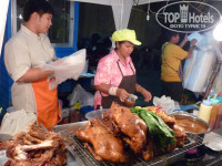 Ну, и, конечно же, праздник живота фудкорт в начале Банглы, напротив заведения с русскими девочками на втором этаже Мулен руж. Если вы слышали предостережения насчет уличной еды, то все они справедливы в других местах, но не в этом. Помимо качественного разливного пива Singha, которое замечу здесь дешевле, чем в Суши боксе во дворе Jung Ceylon (который многие почему-то считают фудкортом), здесь можно полакомится шашлыками из свинины, курицы, тушеной уткой в медовом соусе, улитками, устрицами, рыбой фаршированной лемонграсом, кальмарами, крабами и креветками на гриле, блинчиками с бананами и другой начинкой, словом, всего и не перечислишь. Народ жрет от пуза, приносит свое бухло, и посреди всей этой раблезианской вакханалии надрываясь фальцетом поет местный мистер Eak Elvis, поет в основном романтическую попсу, how deep is your love, надрывается мальчонка, а вокруг по подбородкам течет утиный жир, множатся горы съеденных устриц, выпиваются огромные Singha Tower (трехлитровая колба, стоит 500 бат, внутри трубка со льдом, охлаждаэ)… Стало мальчишку жалко, положили ему денежку. Надо все-таки поддержать местного Элвиса…