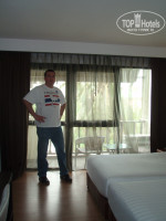 Балкон большой с двумя плетеными креслами и стеклянным столиком между ними - там ежевечерне курили, пили джин Гилбес 0,7 л.(325 бат в ближаиших севен элевен) с тоником швепс (баночка 0,33 14 бат) - у нас был единственный номер, перед которым растет пальма с кокосами, справа заотельный вид на зеленую пустую территорию - хорошо наш балкончик продувался ветерком (очень хорошо). Ежедневно стаф при уборке кладет 2 поллитровые бутылочки отельной питьевой воды - входит в стоимость проживания, так что пейте - не стесняйтесь, если не выпили все равно уберите из холодильника, а то новую не положат, так же и с шампунями-гелями (туалетную бумагу вне зависимости кладут, как писал выше).