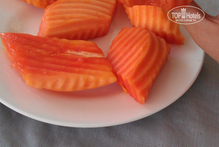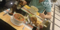 В стоимость нашей путевки входил завтрак. На мой взгляд завтрак нормальный, голодным остаться невозможно…Для меня, как для вегетарианца важно было наличие овощей и фруктов в неограниченном количестве – заканчивается – просишь и вуаля – докладывают…без доплаты без претензий. Примерно завтрак выглядит так: рис 2 вида, лапша с овощами, лапша с чем-то , овощи тушенные, ветчинка, сосиски куриные, яичницы в форме сердечек , какой-то молочный суп, соусы какие хочешь видов 6 насчитала, фрукты обычно по 2 вида и чередуются между собой каждый день – бананы, папайя, ананасы, арбузы. Овощи – морковь, перец, салат листовой, лук, орехи или семена, какие-то посыпки…Хлеб, мини круассаны, булочки, джемы офигенские просто..Но вообще в любое время можно сделать заказ в номер, или пообедать/поужинать в столовой – проверено лично мной, еду готовят дешевле, чем на всем джомьтене, порции большие, чисто, вкусно очень!!!! За что мы подарили персоналу кухни шоколадки, напитки наши русские ;) Можно кстати сделав заказ еды – напитки свои использовать, проблем не было ( в 7-11 покупаешь например).
