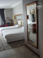 Расселение - в туре был оплачен номер стандарт, заселили в эконом! Вид во двор и моря не видно никаким боком, развернулась в сторону ресепшена. Объяснила , что я звонила перед покупкой тура непосредственно в отель для уточнения что такое эконом и мне объясняли что это вид на окрестности. Так же уточнила что номер стандарт стоил на 4 тысячи дороже, так что .."будьте так добры, пожалуйста!" Оказались добры - дали с самым прямым видом на море! :) Нюанс - нас трое, 2 взр и дите, первый номер что дали - имел 2 одноместные кровати ... Для ребенка предполагалась раскладушка (хотя как я поняла по сути это такая же кровать с толстым матрасом, но на раскладной конструкции), в интернете смотрела много разных фотографий номеров - имела представление какие есть номера, такие же стандарты но с 2 спальной кроватью и еще одной одноместной. Когда номер поменяли ..так и вышло. На этом спасибо. Номер очень красивый, стильный. Что так же очень порадовало, это мини уголок с холодильником, столом, чайником! Мини-мини кухня) Но это не во всех номерах, в каких то номерах холодильник стоял у туалетного столика. В общем расселение дело тонкое, купили стандарт, еще вовсе не значит что Вас туда поселят.. требуйте хотя бы бокового вида на море. Эконом - это вид на окрестности. Хотя в сложившейся ситуации с Теодорой, хорошо если Вам вообще достанется хоть какой то номер в этом отеле. Если что то интересует еще по номеру - спрашивайте.