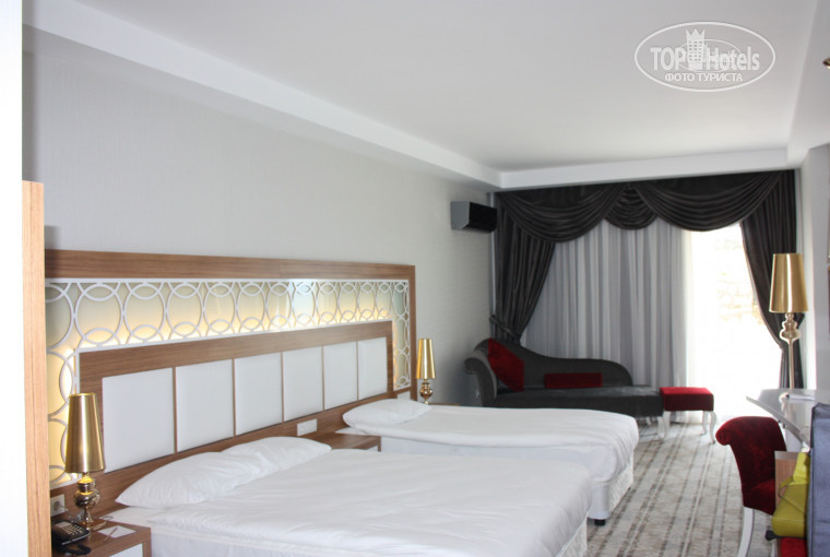 Летели Уральскими авиалиниями - самолет маленький , багаж получили быстро и ехали в отель без остановок - добрались за полтора часа. По приезду - отправили на завтрак , я сказала что у меня будет день рождения - девушки на рецепшене записали - но поздравлений от отеля не было) зато дали шикарный номер на первом этаже с балконом метров в 100)))!!! он один такой во всем отеле!!! Номера современные с плазмой - сейфом,холодильником и чайником, в ванной фен. Все работает! Красивые одноразовые тапочки))