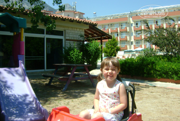 И персонал отеля очень порадовал, все улыбались, шутили, играли с ребенком. Да за ребенка там можно было не перевивать, мою дочу там выучили уже в первый день и называли по имени, хотя в целом для детей сервис не очень - детская комната в каком-то бараке на улице, игрушки в ней старые, грязные, поломанные. перед детской комнатой маленькая площадка в тени деревьев, маленькая горка, качели повешенные наперекосяк и старые ржавые игровые автоматы, не работающие со времен ВОВ, - и все! Еще минус для родителей с детьми в том, что на пляже есть 2х метровый обрыв перед лежаками в сторону моря и очень крутые ступеньки - оставить ребенка без присмотра нельзя. И в воде деткам никак не поплескаться - вход в море галька-булыжники. Из-за перепада высот ступеньки при выходе из отеля к бассейну - с коляской тоже не очень удобно, пандуса нет.