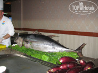 Может кому-то чего-то не хватает, но как по нам - то всего было вдоволь. Мясо (говядина, баранина, индейка, курица), рыба разных видов, морепродукты, овощей достаточно. Из фруктов были только апельсины, грейпфруты, яблоки, сливы. Не привычно для Турции - маловато сладостей (не было фиников, инжира, кураги и турецких сладостей).