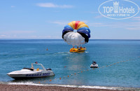 Пляж. Т.к. на галечном пляже отдыхал впервые, пришлось привыкать, через пару дней втянулись. Пляж хороший, к воде привыкли (по началу прохладная, апрель же, позже уже приятная). Резкое дно (через 7 метров уже скрывает) дискомфорта не доставляет, плавать одно удовольствие.