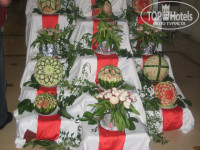 Хочу рассказать ещё про еду. Так называемый шведский стол немного не такой. какой мы себе представляли. но всё равно кушать можно, 2 дня мы ещё присматривались, пробовали всё подряд, некоторая пища нам совсем не нравилась, но потом нашли, то что по душе. Даже я, придерживаясь в обычной жизни, раздельного питания, нашла там пищу по душе... На завтрак в основном яйца - варёные, глазунья, глазунья с овощами, кот. порядком поднадоели нам за 7 дней, а так ребёнок попал 2 раза на рисовую кашу и раза 2 давали вкуснецкие оладушки, к кот. можно взять либо мёд либо разнообразные сладкие соусы... Из напитков кофе, чай, какао, соки типа Юпи... Ещё спайт, кола, фанта.