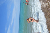 В отеле мы были в 10 утра, нам сразу надели браслетики, показали где можно покушать и дорогу к морю, к бассейнам, что мы и сделали - покушали и быстенько к морю! Впечатлений сразу нахлынуло масса. Я во-первых не видела никогда такого чистого моря! (до этого мы ездили только на море у нас в России - г. Ейск), пляж сначала меркая галька, потом покрупнее, а затем опять у самого моря, в самом море меленькая галечка, разноцветные красивенькие камушки, гладенькие,по которым даже комфортно ходить.