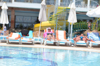 И еще комментарии к отзыву Марии: сотрудники Пегас нам не хамили, но с непрофессионализмом столкнулись. Детская анимация скромная: дети 15 мин. на сцене бегают сами по-себе, потом немного танцуют с аниматорами. Взрослая анимация как и везде, расчитана на немецкий юмор. Детские горки под тентом. Мороженное в наш период было с 17ч. до 18ч. На пляже галька для меня оказалась очень дискомфортной. Резюме: нормальный отель, но для поездки в июне пришлось выбирать другой.