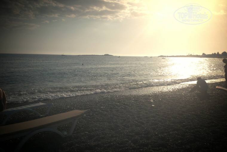 Пляж песчано галечный, слева около мыса дикий пляж там вообще песок, хотя и у отеля ничего не напрягало,мы спокойно купались. ОЧЕНЬ чистое море, просто сказка! Да и вообще расположение у отеля просто идеальное, в бухте! За счёт этого замечательные виды. Ходили на мыс, там такие панорамы раскрываются что дух захватывает!
