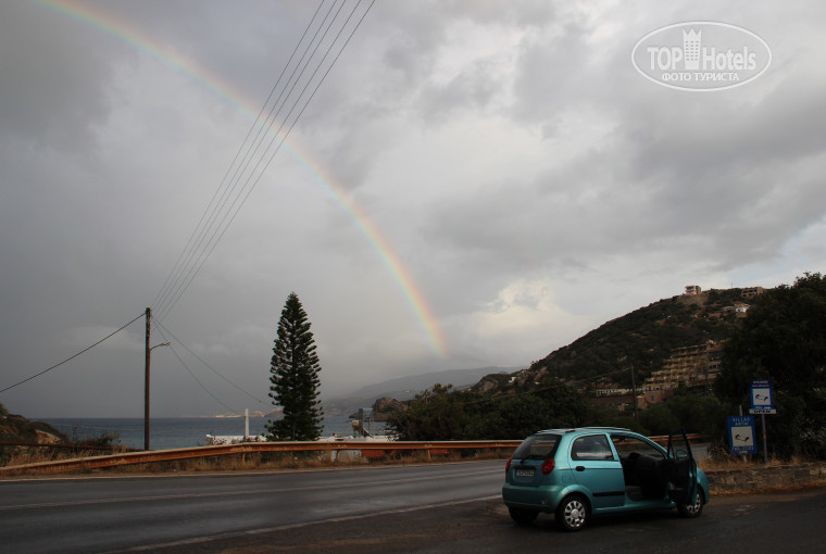 Когда мы прилетели на остров, видимо бог Крита, взяв отпуск, отправился в Нижний Новгород. На Крите было холоднее, чем на родине! Комфортная погода для путешествий. Изначально дома было решено, начитавшись отзывов, что надо искать Илью, который даст нам в аренду чудо-транспорт. Илью нашли быстро, опять же благодаря туристам, не поленившимся отписаться, выбрали бирюзовый Шевроле Матиз, заплатив за 5 дней 130 евро, получив карту острова с Илюшиными отметками, отправились зреть красоту. Думаю, что именно эти 5 дней глубоко засядут в наших мозгах, и воспоминания о них будут согревать нас долгими зимними вечерами. Крит-автомобиль, автомобиль-Крит эти понятия неразделимы! Не было у нас цели все время проводить за рулем, мы путешествовали не напрягаясь, наслаждаясь красотами, крича с высоты "э-ге-гей" от восторга, купаясь и загорая на встречающихся пляжах. Были пляжи и муниципальные, оборудованные зонтиками, шезлонгами, душем, чем мы безвоздмездно пользовались, с мелким белым песком, были и "дикие" - просто песок, море, мы и никого. Море в наш период было достаточно прохладное, но как не войти в бирюзовую прозрачную воду - мы же на море приехали, как говорится "за все уплочено"!))) Объехали на нашем Матизике почти все экскурсии, предложенные ПЕГАСом., иногда плутая, свернувши не туда, заезжая на такие тропы, где не только туриста, местного жителя не встретишь! Кстати, спасибо ребятам из ПЕГАСА за ненавязчивый сервис, они честно отработали, предложив экскурсии, предупредив, что не стоит никуда ходить, все нас обманут, попадете в беду - никто нам не поможет, кроме ПЕГАСа, все мы понимаем - работа у них такая, но улица совсем не страшная и везде нам были рады. Слава Богу, мы обошлись без происшествий.