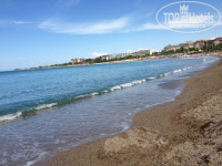Достоинства пляжа – всегда в наличии свободные лежаки, есть переодевалки, душ и туалет.