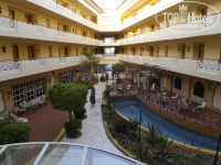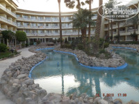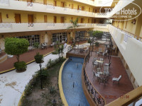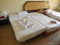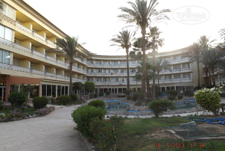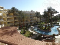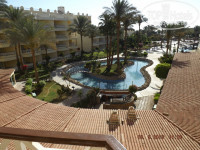 4. Номер. Мебель, конечно, далеко не новая, но отдыхать можно, двери все работают, кондишн тоже. Телик работает (есть 3 русскоязычных канала)Холодильник, правда совсем не морозил, но холодил)). Шланг фена порвался, видимо от древности, пользоваться неудобно. Вид с балкона неплохой - пальмы, бассейн, кусочек моря)).