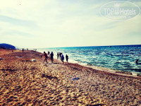 Пляж рядом, песок и галька, есть место где лежат бетонные плиты в море(для меня это было не помеха), снек бар на пляже!