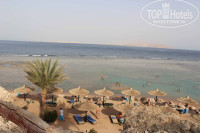 Как наверное везде в Шарме, пляж многоуровневый. Не очень широкий, но достаточно вместительный. Место вроде бы всем хватало. Мы, во всяком случае, не жаловались. Шезлонги конечно, старые, но это не самое страшное. Не сильно грязно, более менее нормально. Вид с пляжа на о.Тиран по-моему.