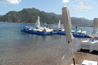 Пляж: пляжа своего нет! И в прошлогодних отзывах написано не точно. Пляж «Нирвана» на который возят туристов никакого отношения к отелю не имеет. И автобус который возит 2 раза в день ( в 11:00 и в 17:00) принадлежит пляжу. Возят бесплатно, лежаки бесплатно, но….всю еду и воду отберут у вас на пляже или не доставайте даже. Покупать должны у них, если хотите пить. 0.3. бутылка воды 1 евро. И спорить скандалить бесполезно. Вас могут даже попросить уйти, если вы будете настаивать на своей воде. Мы не скандалили и покупали воду у них, а так же фреш апельсиновый, 350 мл. 8.5. лир. Пляж «Нирвана» считается самым лучшим в Мармарисе и в Ичмелере, там очень чисто, заход в море идеальный, правда спускаться к нему от дороги очень по крутой лестнице и подниматься высоко. Хотя можно спуститься, если с коляской, а подняться у отеля Фантазия, пройти чуть чуть вперед по набережной там нет лестницы и напротив остановка. На общественном пляже в Ичмелере не загорали, но проезжали мимо и , честно сказать, там муравейник какой то и все равно за лежак надо платить 5 лир. Так что ,то на то выходит. Конечно мы не ездили на их бесплатном автобусе, мы уезжали в 10, а приезжали в 2. Успевали на обед. Потом загорали возле бассейна.