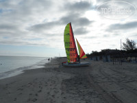 Безумно красивое, всех оттенков бирюзового цвета море. Прозрачная, очень чистая вода, минимальное количество водорослей (если и случалось их наблюдать, то очень-очень редко и в основном после обеда). Песчаное дно. Линия буйков находится на приличном расстоянии, соответственно неограниченные возможности для плавания, и в воде никто никому не мешает. Море очень соленое, тем, кто носит линзы или любит понырять – имейте в виду. Пляж ухоженный. По утрам, регулярно ездит трактор и взрыхляет песок. По вечерам, убирают мусор, оставленный отдыхающими на пляже, хотя урны присутствуют и в достаточном количестве. Из развлечений на пляже волейбол, аниматоры постоянно устраивают всевозможные игры, уроки йоги и латинских танцев, в 12 начинается лотерея, можно выиграть бутылку рома и другие призы. Еще на пляже можно бесплатно взять катамаран, виндсёрфинг или каяк (одноместный или двухместный). Дополнительной платы будет стоить поездка на парусном катамаране, тут уже будет присутствовать инструктор, кроме этого можно арендовать ласты и маску. За всем этим наблюдают спасатели, уплывший за буйки услышит свист. Капля дегтя – это не вполне нормальная ситуация с лежаками, точнее даже не с лежаками а с местами в тени. Некоторые “пассажиры” с раннего утра занимают лежаки, а на пляже появляются ближе к половине 12. Припозднившись, рискуете остаться под палящим солнцем, а сгореть очень просто, особенно в первые дни. Поэтому до завтрака имеет смысл занять лежаки (я вставал в 7мь и шел занимать, завтрак начинается в 7.30), если рассчитывайте прийти на пляж и после обеда, то опять-таки стоит оставить на лежаках вещи. Хороший бассейн, точнее их два и они соединены. Есть зона джакузи и ворота для водного поло, есть сетка для водного волейбола, а также отдельный “лягушатник” для детей.