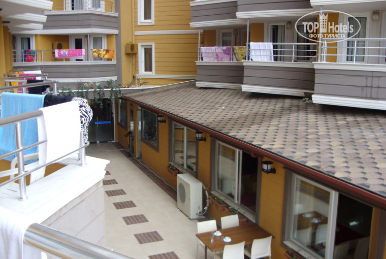 Отель семейный. Приехали в 12.30, оставили вещи на reception и пошли обедать. Заселили в 13.30 в номер на первом этаже. В номере было чисто, но пахло сыростью. Сказали менеджеру, что номер не понравился, и нам предложили взамен (без доплаты) уютный номер на втором этаже с видом на внутренний двор, ресторан и бассейн. Разговаривали с туристами из соседнего отеля Turtas 5, у них 1 русский канал был, у нас 4,но смотреть некогда было. Еще один огромный плюс –постоянная горячая вода в душе. Во многих отелях Турции до сих пор вода бывает «теплой» только после обеда.