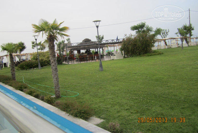 Отдыхали с 26.05.-2.06.2013. Из аэропорта "Македония" до отеля ехать около 2 часов. Сам отель распологается в красивом месте, отличный вид на гору "Олимп" и конечно же море. До ближайшего посёлка около 40-50 минут гуляющем шагом. Погод в конце мая отличная, правда немного прохладное море, но главное окунуться и можно наслаждаться.