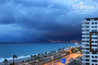 Каких-то проблем с персоналом у нас ни разу не возникло. Скорее наоборот. Я постоянно подучивал турецкие слова и обращался к барменам. Им это очень нравится. Поэтому мы сразу заполучили их доверие, а они наши уважение за свою хорошую работу. Во время ужинов не всегда оперативно убирали грязную посуду со столов. Мы всегда успевали занять столик на четверых. Так как ресторан на последнем 7-ом этаже, то оттуда очень красивые виды на море, Аланью и закат.