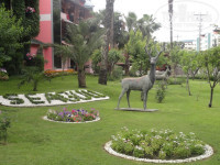 Питание. Среднее. Наутро много различных хлопьев, яйца вареные, жареные, омлет. Колбаски жареные. Порадовало много зелени - укроп, петрушка, руккола и т.д., даже мята была. Салаты, конечно, тоже присутствовали, но мы их даже не брали, странное месиво. Много бисквитных пирожных, все на один вкус, эклеры пару раз были. Из фруктов каждый день были яблоки, дыни и грейпфруты. Обед, ужин-картошка в разных вариациях, макароны, рис, супы. Мясо почти всегда было с чем-то намешано, там и баклажаны и картошка, чего только нет. Пару раз был куриный шашлык, котлетки и рыба на углях. Поставила 4,т.к. очень напрягала эта мешанина с мясом. Еще одна особенность-ужин с 7 до 9,придешь после 8ми мало, что достанется, шашлык сворачивают, мясо уже не докладывают, ешь что осталось.