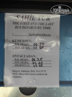 Напротив отеля сразу идут магазинчики, продают фрукты. Если выйти из отеля налево, то через пол км поселок заканчивается и начинается дикий пляж с большими камнями(фото прилаг.). Мы брали велосипеды по 2 $ за час в отеле. Ездили до каньона, вход стоит 5 Т.Лир. На улице можно взять велосипеды на весь день за 12 $.Интернет платный 1 час- 2$,2 часа-3$,день-5$,на неделю-30$.Выложила фото с подключением ,вот там все расценки в евро. Цены на автобус и время тоже выкладываю.