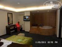 КАЙФФФ!!! Настроение после расположения в номере как то сразу поползло в верх!!!!номер чистенький, на полу ковровое покрытие, большие кровати, телики (которые почти и не смотрели) ну и джакузи))))) (правда в ней работал кран только с горячей водой), ванная комната стандарт ; унитазик, раковина с зеркалом, ну и сама ванна. все довольно таки очень прилично. (к стате в обычных номерах все то же самое, только что комната одна, это мы сами смотрели заходили). Уборка номера и смена полотенец ежедневно. за 12 дней постельное меняли 1 раз. Считаю это вполне достаточным.