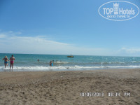 Не далеко от отеля, каждые 30 мин. ходит автобус от отеля. Можно прогуляться пешком не очень далеко пока всех ящериц в доль дороги по рассматриваешь уже и пришел)))) минут 15 где то. Сам пляж обычный; песок , море)) на берегу есть отельное кафе где так же все включено :напитки еда в обед (если на обед в отель не пошел) лежаки с матрасиками. Короче там главное что б солнце было и море!!!!! а оно там есть!!!!