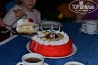 Питание в принципе нормальное, всегда было что поесть и даже за две недели не особо надоело. Дети ели супчики, кроме красного перченого, всегда было мясо, курица, овощи отварные вкусные. Из фруктов вкусные яблоки, апельсины, дыни, абрикосы один раз. Не хватало арбузов. Мы покупали на аллее фонтанов, но они оказались не очень вкусные. Очень понравился шеф-повар, отзывчивый и добродушный. На день рождения сыну заказывала торт, 25 баксов, очень вкусный. Стол нам красиво украсили в аля-карт, шеф красиво фруктики нарезал.