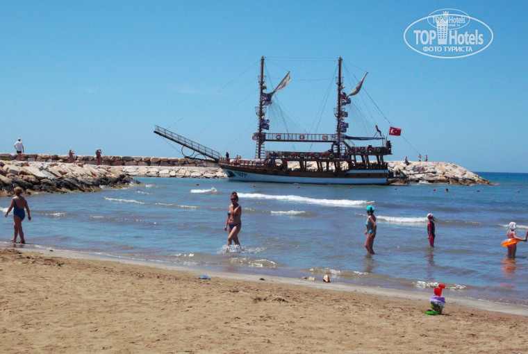 Бухта - очень удобным для нас оказалась бухта в которую входят два пиратских корабля. По расписанию понедельник и четверг в 9-00 яхта идет в Манавгат (купание + шоппинг)до 17-00; среда, пятница и воскресенье в 9-30 прогулка к острову дельфинов и голубую лагуну до 15-00. Оба рейса - 15 дол. на взрослого (ребенок бесплатно), на корабле кормят на выбор (курица, рыба и салат), напитки платные 4 дол - 0,5 пива 3 дол - 0,5 спрайт.