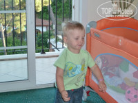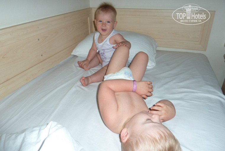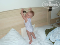Нам дали 2 двухкомнатных номера (размещение: 3 взрослых и 2 взрослых + 1 child + 1 infant - за малявку доплачивали 50 долларов ещё в агенстве). Попросили электрочайник и кроватку - принесли. Правда, кроватка - это больше манеж, но всё равно - удобно. В номере (как уже было сказано выше) 2 комнаты, 2 санузла (в 1-м раковина, унитаз, душевая кабина, во 2-м тоже самое, только вместо кабины ванна), 2 шкафа (кстати, вешалки-плечики в нём тоже есть), в одной комнате 2 раздельные кровати, во 2-й - двуспалка, тумбочки, 2 телевизора (ТВ-каналы: Первый, Россия и какой-то новостной, кажется Россия-24), холодильник и тумба с зеркалом. Жили в главном корпусе, правда, на разных этажах - зато активно пользовались телефонами в номерах и тремя лифтами. :-)