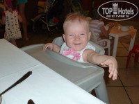 Питание на отлично, конечно, блюда повторяются, но каждый раз было что-то новенькое. Среднему ребенку дпвали супы, каши, лепешки и булочки (очень вкусные, выпекали при тебе), омлетик, чай в тюрецких стаканчиках, сок, кстати, тоже (это уже не Тот Самый Yupi или Invite, но и, конечно, не свежевыжатый. Между прочим, последнего как раз и небыло. Вообщем, сок из автоматов очень напоминает наш пакетированный. Кофе, кстати, тоже в автомате (зерновой), если, конечно, не захочется горячего шоколада, он безусловно сублимированный или каппучино, он на половину зерновой, наполовину (молоко) из смеси. В обед и вечером давали морожное и нетолько детям. Блюда на гриле или которые готовят при тебе - просто супер. В обед и на ужин всегда была рыба на гриле (в том числе и дорада, чсто делали индейу, куринный шашлык). Утром повар-виртуоз готовил овощной омлет на сковороде. В отеде есть детские стульчики для малышей, кушающих за столом с родителями, а также маленькие столы и стулья для тех, кто хочет кушать самостоятельно,