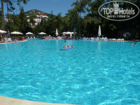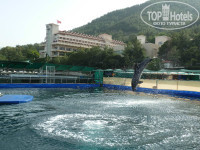 Про детский клуб: туда брали без ограничения возраста, если ребеночек хочет - пожалуйста, они там рисуют, депят, играют, есть разные конкурсы. Однажды ходили в дельфинарий (он по соседству, в отеле Mares). Я водила сынишку, с меня взяли 35 лир, он - бесплатно. Представления там нет, да это и тяжело для маленьких, зато дельфин прямо на расстоянии вытянутой руки выделывает свои трюки. Кстати, желающие могут поплавать с ними, покататься и пр. Всё это доступно для всех за определенную плату. Нам как детскому клуюу ббыла маленькая скидочка. Малышу очень понравилось!