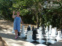 Территория отеля большая, зеленая, тенистая, 1 большой бассейн, несколько маленьких возле бунгало, несколько дестких бассейнов, 3 аквагорки, детская площадка, мини-гольф, теннис и шахматы обычные, кажется, за деньги.