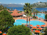 Отдыхали в Марти Резорт неделю с 25 мая. Отель очень понравился, просто райский уголок, всё вокруг в цветах, сам отель очень красивый, глаз не оторвать, номера просторные. В нашем стандартном номере кроме прочего был холодильник с бесплатными напитками, которые дополняли каждый день (пиво, минералка с газом и без, кока-кола, фанта, спрайт), также чайник, кофе растворимый, разный чай, сахар. Вообще питание в ресторане на любой вкус. Были: баранина, говядина, индейка, курица, язык, королевские креветки, мидии, кальмары. Зелень и овощи всех сортов и видов. Куча разных сыров и холодных закусок. Из фруктов: арбузы, дыни, яблоки, нектарины, персики, груши, мушмула, клубника. На гарнир разные блюда из овощей, для любителей фастфуда картошка фри, макароны с разными подливками, питы с разными начинками. Свежевыжатый апельсиновый сок, сладости - отдельная песня. Много разных йогуртов, подливок, хлопьев-мюсли, даже мёд в сотах. Стол настолько красив, что все только и фотографировали его. Раз в неделю в отеле - Турецкая ночь, кухня с национальной едой, турецкая музыка, вечером - национальные танцы и танец живота. Персонал очень услужливый и вежливый, претензий нет. Берег моря - мелкая галька, когда заходишь в море - на дне песок, вода очень чистая (голубой флаг). Очень красивая природа - вокруг горы. Если выйти из отеля к морю направо - начинается длиннющий променад с магазинчиками сувениров и кафешками, недалеко - красивый канал с цветущими олеандрами. К своему удивлению, рискнули купить экскурсию. Всё понравилось - большой автобус с кондиционером, русский гид, обед и ничем не отличалось от экскурсий, купленных у гида, только дешевле в 2 раза! Вобщем, отдых оставил самое приятное впечатление.