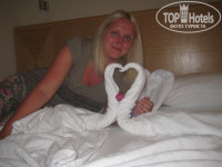 2.НОМЕР И УБОРКА. Как ранее написала,заселили нас в номер с видом на море,чистый,красивый)))У нас всё работало: и фен,и телефон,и телевизор,и всё остальное(у друзей тоже).Убирали каждый день,полотенца меняли через день,постельное два раза за 8 дней отдыха.Один раз(а у наших друзей два) сделали красивых лебедей на кровати с лепестками роз)))Брали сейф на 7 дней,заплатили 14 $ . Чаевые оставляли по 1$ каждый день.