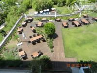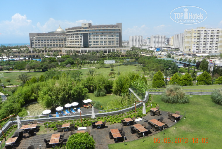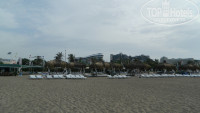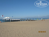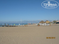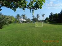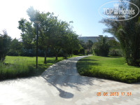 Территория отеля не разочаровала, зеленая, много тропинок, гамаков, детский клуб с детской площадкой и бассейном, есть домик кошек. Пляж большой, широкий, лежаков всегда много свободных, минус конечно, что они очень далеко от воды и очень горячо ходить к морю по песку. Около лежака на пляже ставили надувной бассейн, места много, на пляж приходили в 9 ч. всегда рядом находили по 4 лежака. Пляж не совсем хорошо убирают, встречаются окурки, бумажки, а после салюта вообще до обеда паленый картон лежал на песке, стали убирать только часов в 12. На пляж около 11 утра привозят дыни и арбузы, но дают порционно человеку по 2 кусочка того и этого, можно неск. раз подойти. В баре на пляже только пиво и сок+ вода. Волейбол играют каждый день и утром и после обеда + наши мужья играли в бочу, им тоже понравилось, там даже приз шампанское разыгрывали.