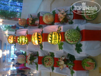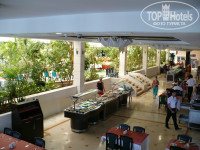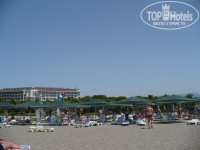 Территория отеля: не особо большая, но очень красивая и продуманная. Там приятно находиться. Хорошие бассейны, горки, детская площадка. Пляж чистый и ухоженный, песчано-галечный. Симпатичный амфитеатр. Внутри отеля, можно сказать, шикарно. На -1м этаже есть баня-сауна, и крытый бассейн - мы туда так и не сходили, отпугивала женщина, упорно навязывавшая нам услуги пиллинга-массажа-косметолога. Желающим лучше съездить в городскую баню, намного дешевле выйдет вся та же очищающе-релаксирующая программа.
