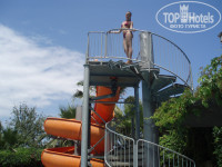 Территория отеля уютная, всё ухожено: бассейн, лежаки, водная горка.