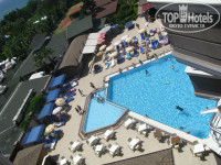 Телевизор допотопный, русских всего несколько каналов, ремонт в комнатах видимо уже давно не делался, шторы и тюль порванные, окно не открывается, только дверь,москитной сетки нет, поэтому ночью залетают комары в номер. Кондиционеры тоже очень старые, холода почти от них нет, на балконе вентилятор от кондиционера Ваших соседей, жужит страшно. Так как кондиционер работал плохо приходилось спать с открытыми дверьми, но спокойного сна не ждите - аниматоры соседнего отеля не дадут, крики, танцы и т.п. до утра -более подходит для молодёжи, но не для семьи с детьми.