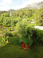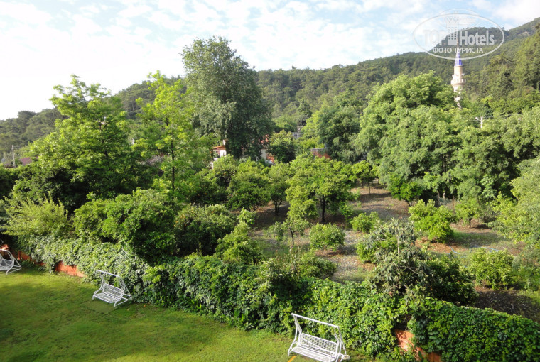 Так вот об отеле. Отель находится у подножия горы, в окружении зелени, в 10 минутах ходьбы от моря (есть трансфер, но мы отказывались, дабы иметь хоть какую-то физическую нагрузку :)). Я очень люблю горы! Так что для меня расположение этого отеля просто идеально! Вечерами, сидя у бассейна, я наслаждалась чистейшим горным воздухом! А то что это был чистейший горный воздух я могу судить не понаслышке, так как несколько лет прожила в девственно-необжитых горных местностях :) А какой у меня был вид с балкона!!! Кстати, я не просила селить меня с какой-то определенной стороны, не давала взяток ака чаевых, хотя и читала о том, что надо просить номер с видом на горы и подальше от мечети :) К слову о мечети. Намаз я слышала только в первую ночь, все последующие спала как младенец – меня не будили ни петухи, ни звуки из мечети.