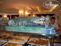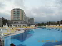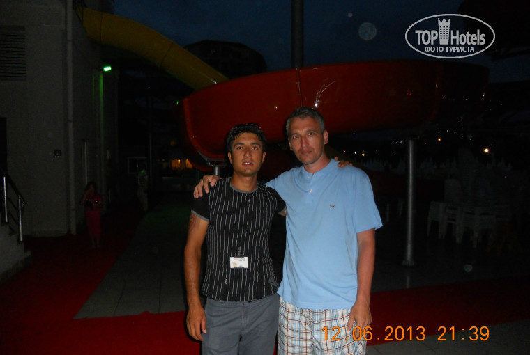 днем у бассейна проводят водную гимнастику ,веселые игры типа кто дольше станцует на серфинге.Дартс, боча волейбол.Мороженое давали каждый день у бассейна с 11:30-12:30 и 14:30-16:30.очень вкусное мороженое.Примерно в это же время и аквопарк включали.Это 4 горки для взрослых и 1для малышей.Мой сын катался на взрослой горке,хотя плавать не умеет.но там не утонешь.Воды там по пояс.Все дети там барахтаются.Аесли под мостиком проплыть то там будет уже воды по горло.вода чистая ,прозрачная.но хлоркой пахнет.